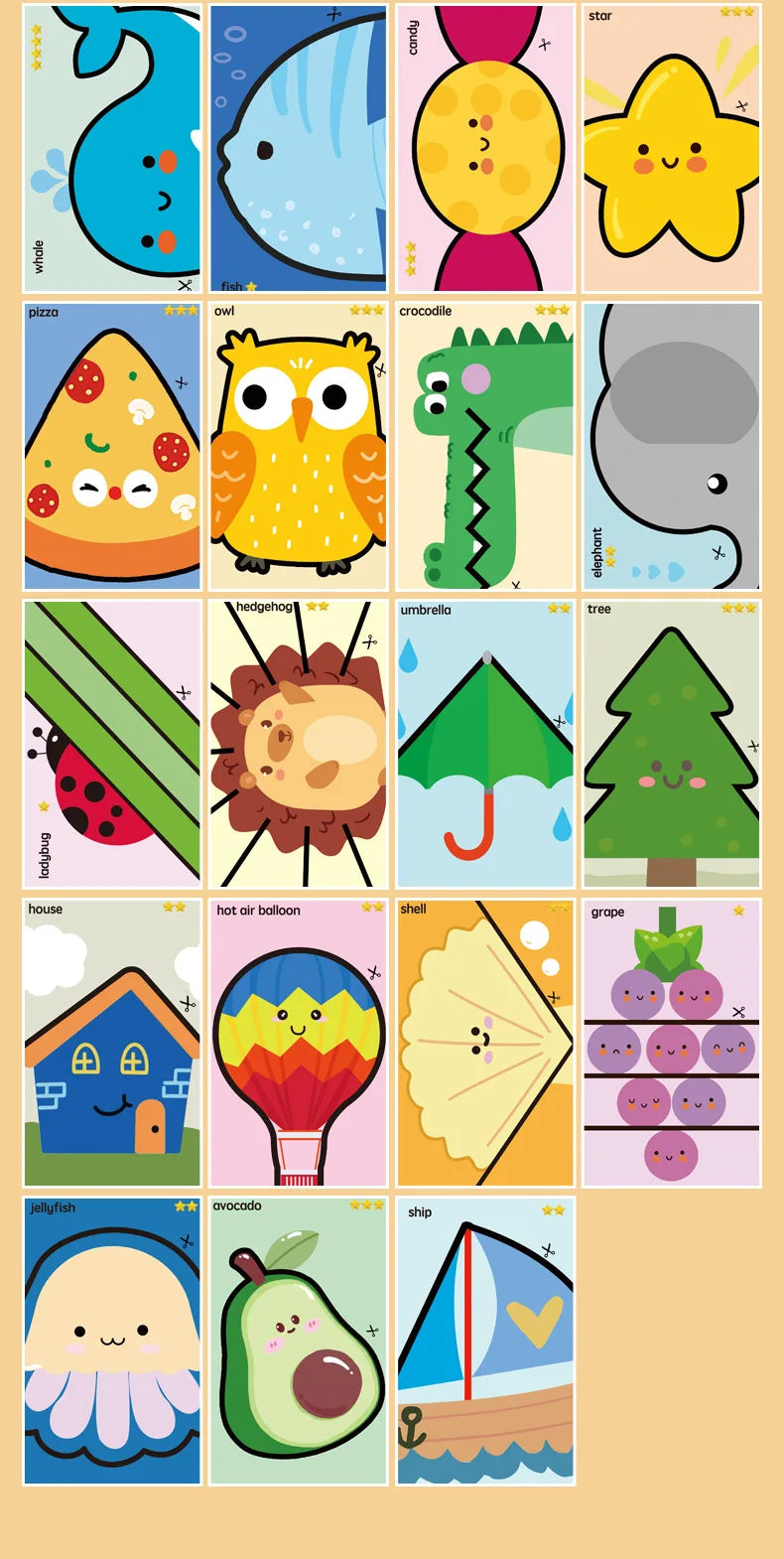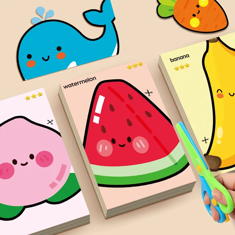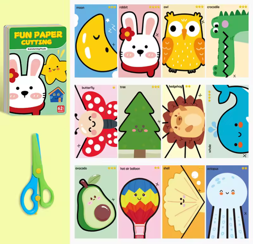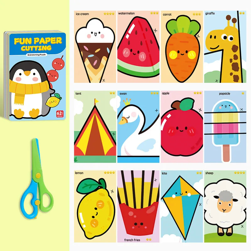 Makes arts and crafts extra fun with this Fun Paper Cutting with Flora Fauna! packed with 62 colorful sheets featuring fruits, animals, food, this set is perfect for children to explore creativity while learning cutting, folding and puzzle skills. It's great way to keep kids entertained while supporting their fine motor skills, hand-eye coordination and imagination.